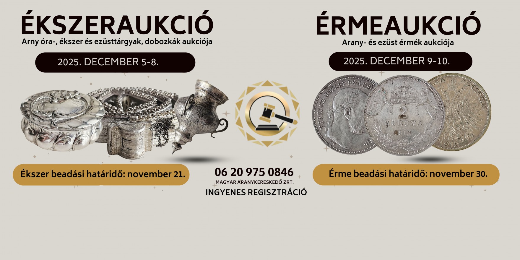 Seit 2009 ist die Magyar Aranykereskedő Zrt. ein wichtiger Akteur auf dem Gold- und Schmuckmarkt in Ungarn. Wir stellen unsere internationale Handelserfahrung und das Wissen unserer fachkundigen Mitarbeiter in den Dienst unserer Kunden. Bei der Schmuckauktion werden Schmuckobjekte grundsätzlich auf Kommissionsbasis verkauft. Während der Auktion versteigert das Schmuckhaus die Juwelen im eigenen Namen, aber zugunsten des Verkäufers.